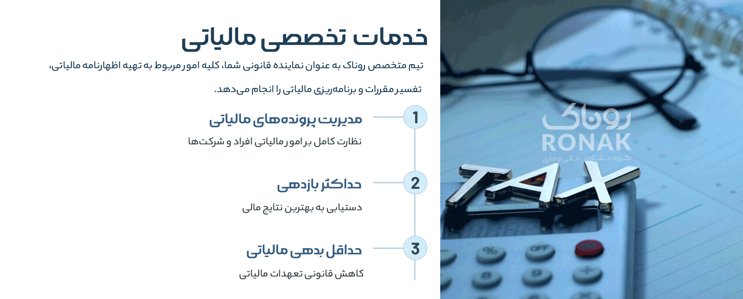 با اعتماد به تیم روناک، امور مالیاتی خود را با اطمینان و آرامش مدیریت کنید.