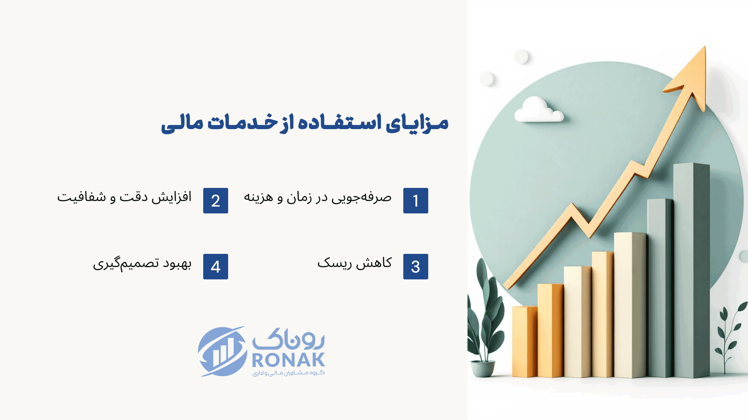 صرفهجویی در زمان و هزینه : با واگذاری امور مالی و حسابداری به کارشناسان حرفهای، میتوانید وقت و منابع خود را به فعالیتهای اصلی کسبوکار اختصاص دهید.